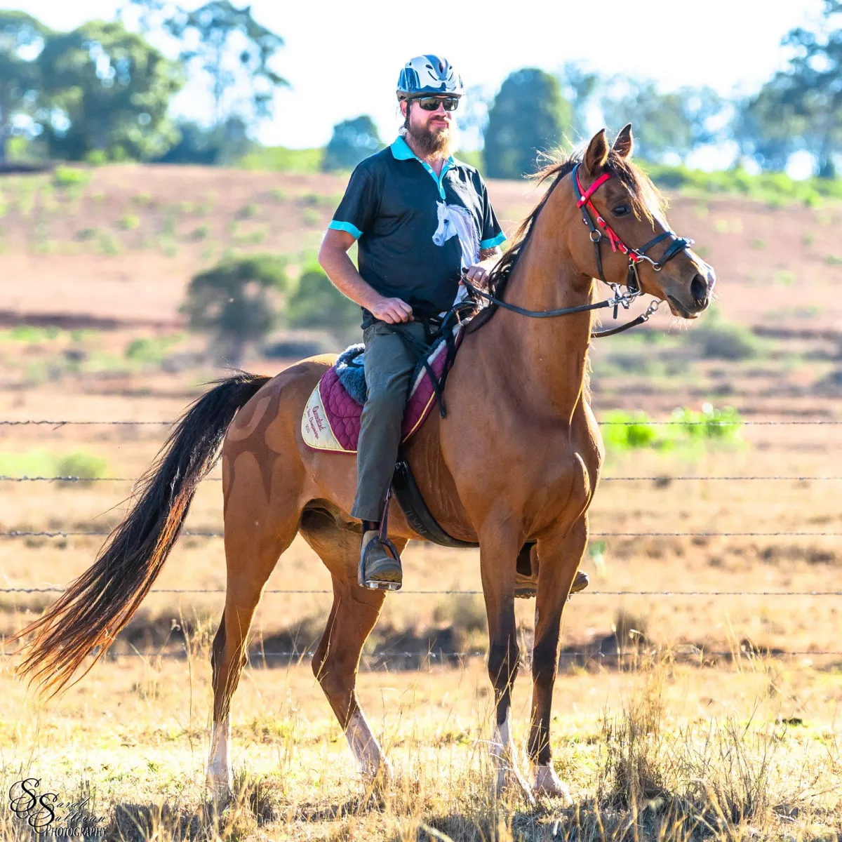It all started when Matt's mum, Kate Gadsby, acquired an Arabian horse named Harry while helping a friend with her trail riding business. A new interest sparked, and their first official outing was a successful CTR event. Kate was pretty nervous, being new to horses and events. Fortunately, a kind lady named Chrissy took Kate under her wing, suggesting she try the world of endurance riding. Kate was at the next event in Imbil with bells on!